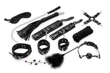 Αυτό το πλήρες σετ 11 τεμαχίων από τεχνητό δέρμα αποτελείται από διάφορα παιχνίδια BDSM για αυτόν και εκείνη. οι μανσέτες έχουν μια πολυτελή ωραία επένδυση και όλα τα παιχνίδια που μπορούν να χρησιμοποιηθούν για να συγκρατήσουν τον σύντροφό σας είναι ρυθμιζόμενα στο μέγεθος και διαθέτουν κρίκους που μπορούν να χρησιμοποιηθούν για την τοποθέτηση βαρών, γάντζων και σχοινιών. Το ball gag έχει οπές αερισμού και είναι επίσης ρυθμιζόμενο. Αυτό το υπέροχο σετ είναι ειδικά σχεδιασμένο για να μυήσει τους συνεργάτες στον υπέροχο κόσμο του παιχνιδιού της δουλείας! Υλικό: τεχνητό δέρμα.