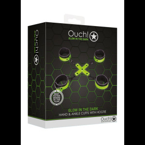 Λάμψη στο σκοτάδι, το μέλλον της δουλείας είναι εδώ. Σχεδιασμένο με αυθεντική αισθητική δουλείας, αλλά με την προστιθέμενη απόλαυση των ιδιοτήτων λάμψης στο σκοτάδι, η φθορίζον πράσινη λεπτομέρεια θα μετατρέψει κάθε εκδήλωση σε ένα μέρος. Με Τον Ouch! Λάμψη στο σκοτάδι, η διασκέδαση αρχίζει μόλις όταν τα φώτα σβήνουν. Αυτές οι μανσέτες χεριών και αστραγάλου με το hoggtie εκπληρώνουν όλα τα ζαλισμένα όνειρά σας! Οι συνοδευτικές μανσέτες του καρπού και του αστραγάλου φροντίζουν να μην πρόκειται να πάτε πουθενά.Τα προϊόντα Glow-In-The-Dark πρέπει να ενεργοποιούνται με το φως του ήλιου πριν το απολαύσουν στο σκοτάδι.