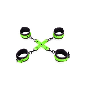 Λάμψη στο σκοτάδι, το μέλλον της δουλείας είναι εδώ. Σχεδιασμένο με αυθεντική αισθητική δουλείας, αλλά με την προστιθέμενη απόλαυση των ιδιοτήτων λάμψης στο σκοτάδι, η φθορίζον πράσινη λεπτομέρεια θα μετατρέψει κάθε εκδήλωση σε ένα μέρος. Με Τον Ouch! Λάμψη στο σκοτάδι, η διασκέδαση αρχίζει μόλις όταν τα φώτα σβήνουν. Αυτές οι μανσέτες χεριών και αστραγάλου με το hoggtie εκπληρώνουν όλα τα ζαλισμένα όνειρά σας! Οι συνοδευτικές μανσέτες του καρπού και του αστραγάλου φροντίζουν να μην πρόκειται να πάτε πουθενά.Τα προϊόντα Glow-In-The-Dark πρέπει να ενεργοποιούνται με το φως του ήλιου πριν το απολαύσουν στο σκοτάδι.