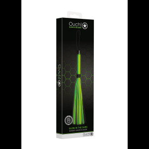 Λάμψη στο σκοτάδι, το μέλλον της δουλείας είναι εδώ. Σχεδιασμένο με αυθεντική αισθητική δουλείας, αλλά με την προστιθέμενη απόλαυση των ιδιοτήτων λάμψης στο σκοτάδι, η φθορίζον πράσινη λεπτομέρεια θα μετατρέψει κάθε εκδήλωση σε ένα μέρος. Με Τον Ouch! Λάμψη στο σκοτάδι, η διασκέδαση αρχίζει μόλις όταν τα φώτα σβήνουν. Πειράζει, παρακαλώ ή μαστίξε τον εραστή σου, ή υποβρύχιο, σε υποταγή με αυτό το μαστίγιο. Η στιβαρή λαβή δίνει την τέλεια λαβή για να προσφέρει πικάντικα εγκεφαλικά ή σκληρά μαστίγια με ένα ικανοποιητικό τσίμπημα. Επεκτείνετε τις συνεδρίες παιχνιδιού δεσίματος και συνδυάστε το χαϊδάρι με μαστίγωμα από ένα υποτονικό ξεκίνημα σε ένα εκστατικό κρεσέντο! Τα προϊόντα Glow-In-The-Dark πρέπει να ενεργοποιούνται με το φως του ήλιου πριν το απολαύσουν στο σκοτάδι.