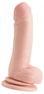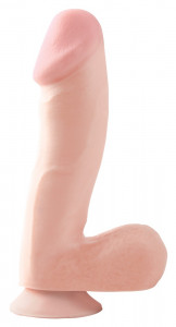 Dildo σε σχήμα πέους με ελαφριές φλέβες και βάση αναρρόφησης. Πλήρες μήκος 20,5 cm, μήκος εισαγωγής 17,8 cm, πλάτος 4 cm. PVC.