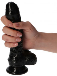 Ρεαλιστικό πέος με φλέβες και βεντούζα για να το τοποθετήσετε σε οποιαδήποτε λεία επιφάνεια. Κατασκευασμένο από PVC.