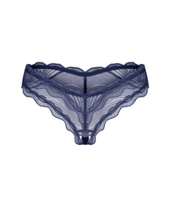 Σε μια σαγηνευτική απόχρωση σκούρου μπλε, το στρινγκ χωρίς καβάλο Nightly Blue αναδεικνύει το ελαφρύ ύφασμα με περίπλοκα σχέδια για έναν τέλειο συνδυασμό αισθησιασμού και κομψότητας. Οι λεπτές, κυματιστές άκρες προσθέτουν γοητεία, ενώ το έντονο ανοιχτό σχέδιο προσφέρει μια ακαταμάχητη γοητεία.