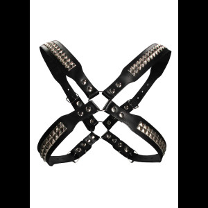 Με ένα μεγάλο O-ring στη μέση της περιοχής του στήθους, σε έντονο μαύρο δέρμα PU και ενισχυμένο με στιβαρά πριτσίνια, αυτή η ζώνη τραβάει τα βλέμματα! Και στις δύο πλευρές αυτού του κεντρικού χαρακτηριστικού, δύο ακόμη o-rings και δερμάτινα λουράκια υψηλής ποιότητας PU συνδέονται κάτω από τους βραχίονες και πάνω από τους ώμους.